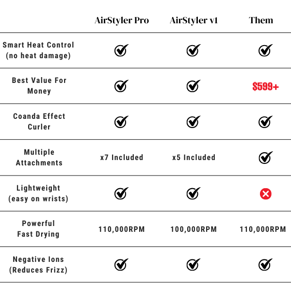 The AirStyler Pro features advanced technology, including more powerful airflow, enhanced heat control, and additional attachments for greater versatility in styling options.